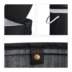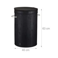Holen Sie sich den idealen Wäschekorb für Schlafzimmer, Bad oder Keller nach Hause. Die Fertigung aus Bambus macht die Wäschetonne zum optimalen Möbel für Feuchträume und schafft einen dekorativen Look. Die schwarze Wäschetruhe bietet viel Platz für Ihre Schmutzwäsche. Diese kann problemlos mit dem Klappdeckel verborgen oder mit den Griffen transportiert werden. Bei Bedarf kann die flexible Wäschebox einfach zusammengefaltet und verstaut werden.
