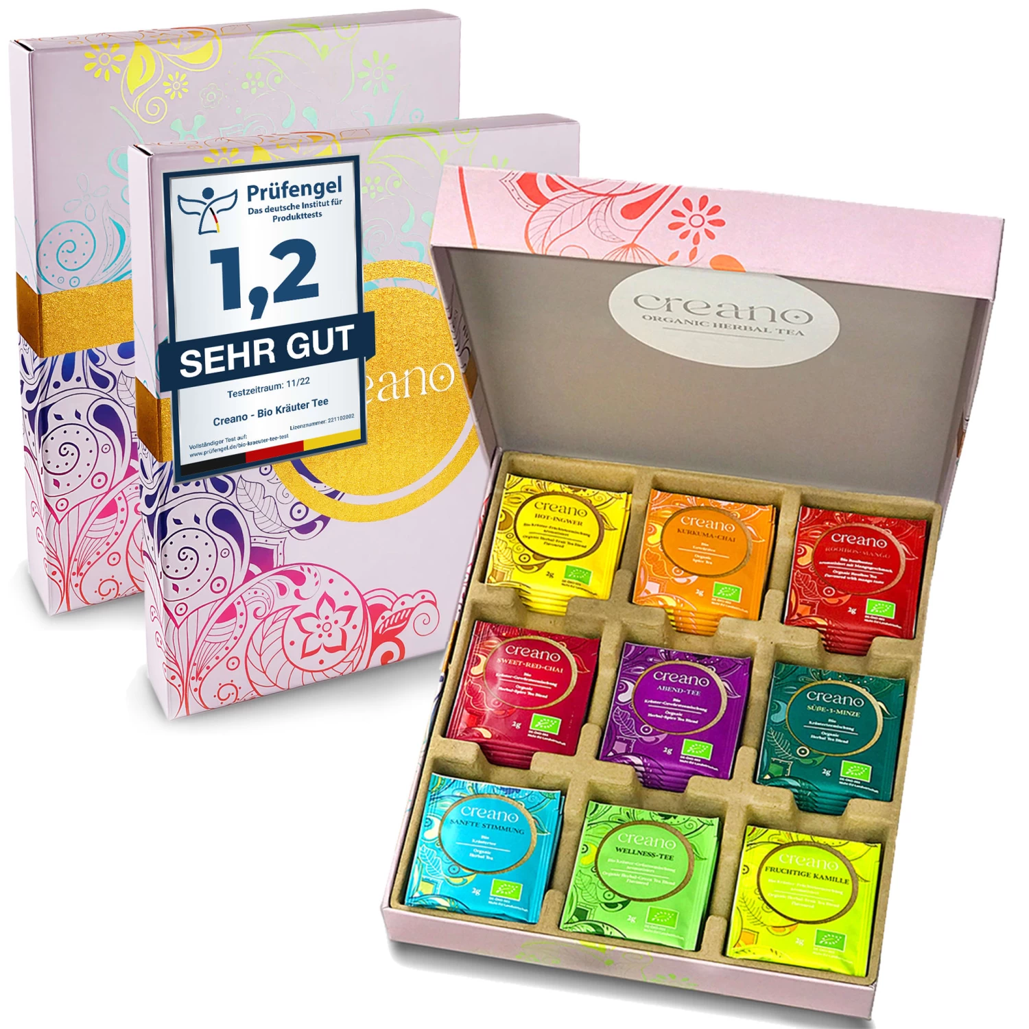 2x GESCHENK-BOX „Kräuter-Früchte-Gewürz-TEE“ BIO 45 Teebeutel in 9 Sorten