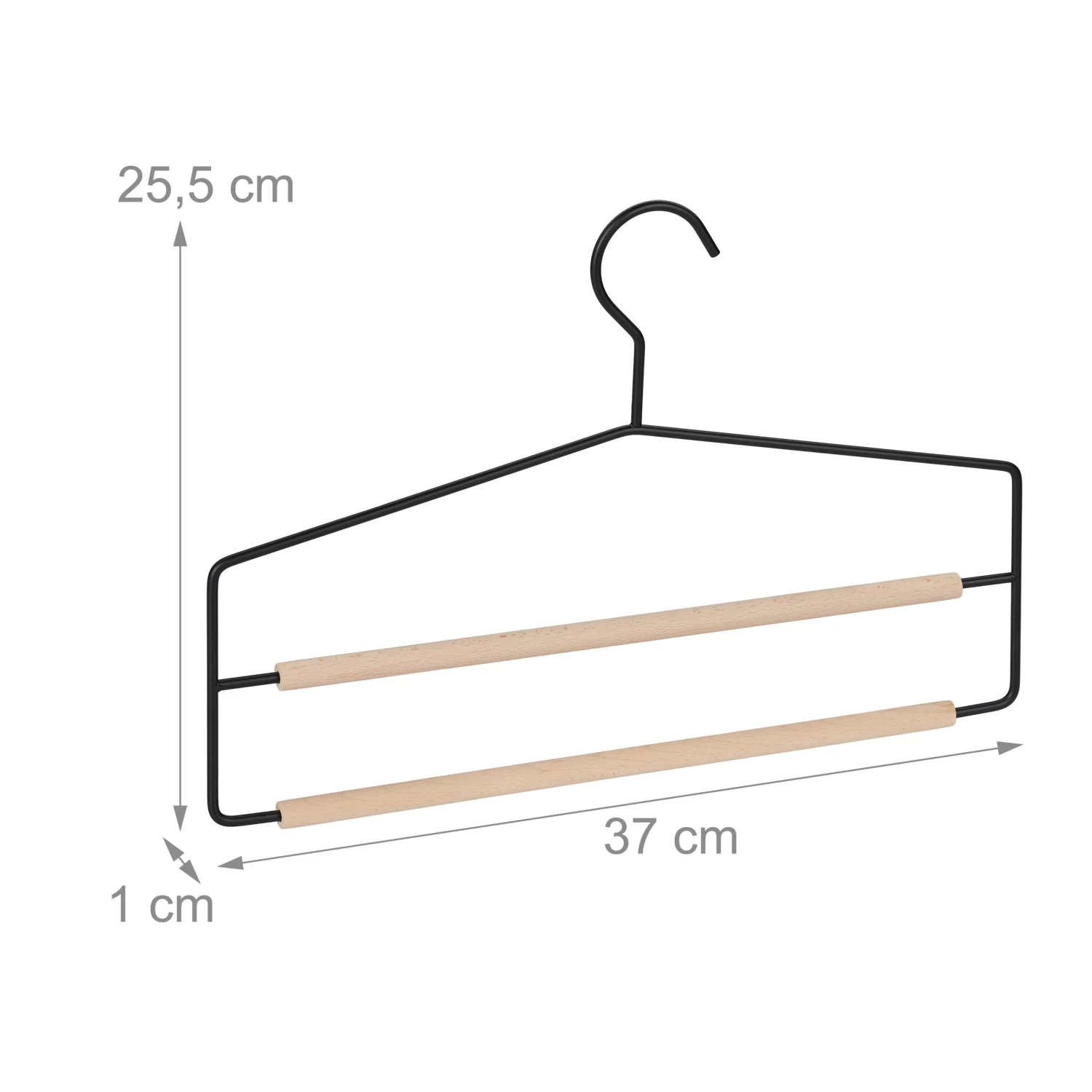 Die Hosenaufhänger im 3er Set bewahren nicht nur Ihre Kleidung platzsparend auf, sie sind auch ein wahrer Hingucker in Ihrem Kleiderschrank. Auf den 2 Stegen können Sie raumsparend Hosen oder Jeans ohne Knicke und Falten aufhängen. Ideal verwendbar sind die Mehrfachbügel auch als Halter für Tücher, Schals oder Krawatten. Die Holzhosenbügel überzeugen mit ihrer edlen Optik und den 2 rutschfesten Hosenstangen aus natürlichem Holz.