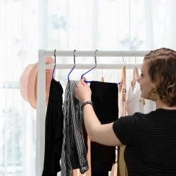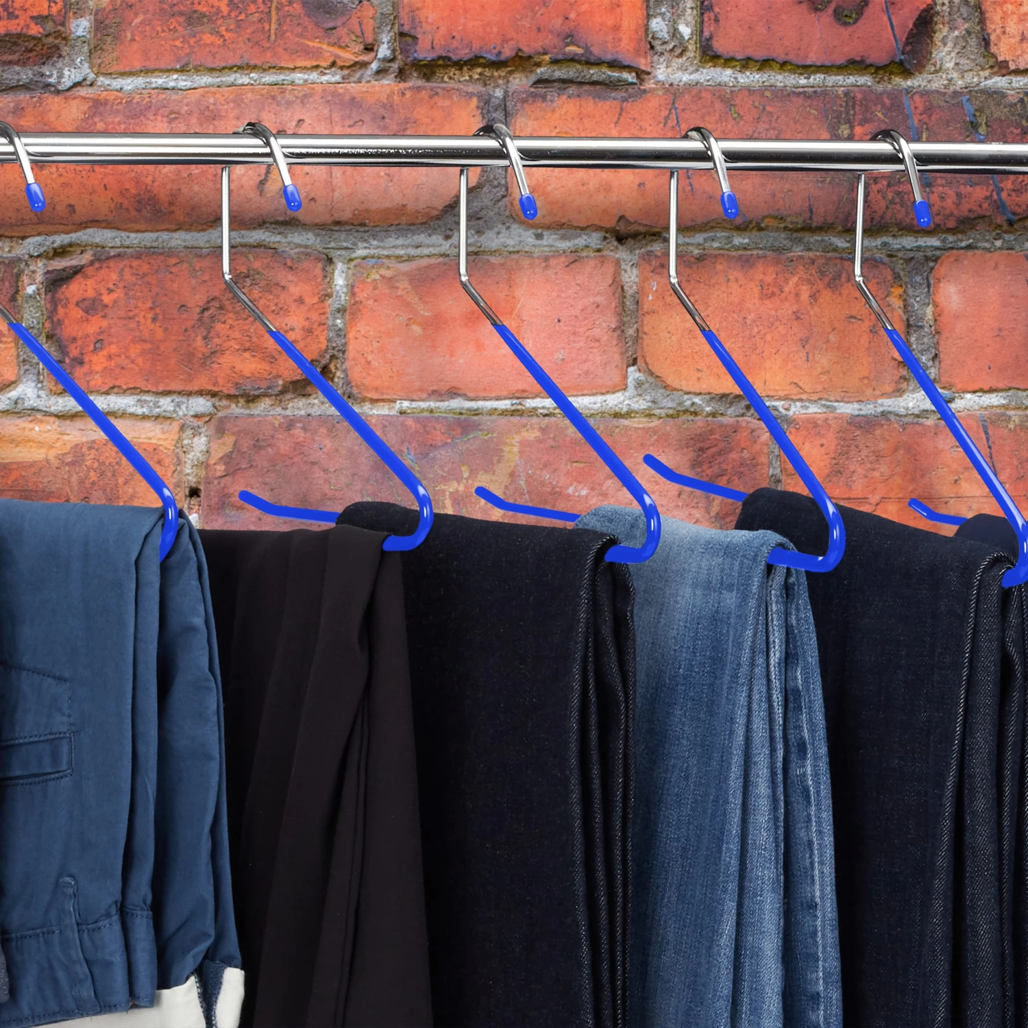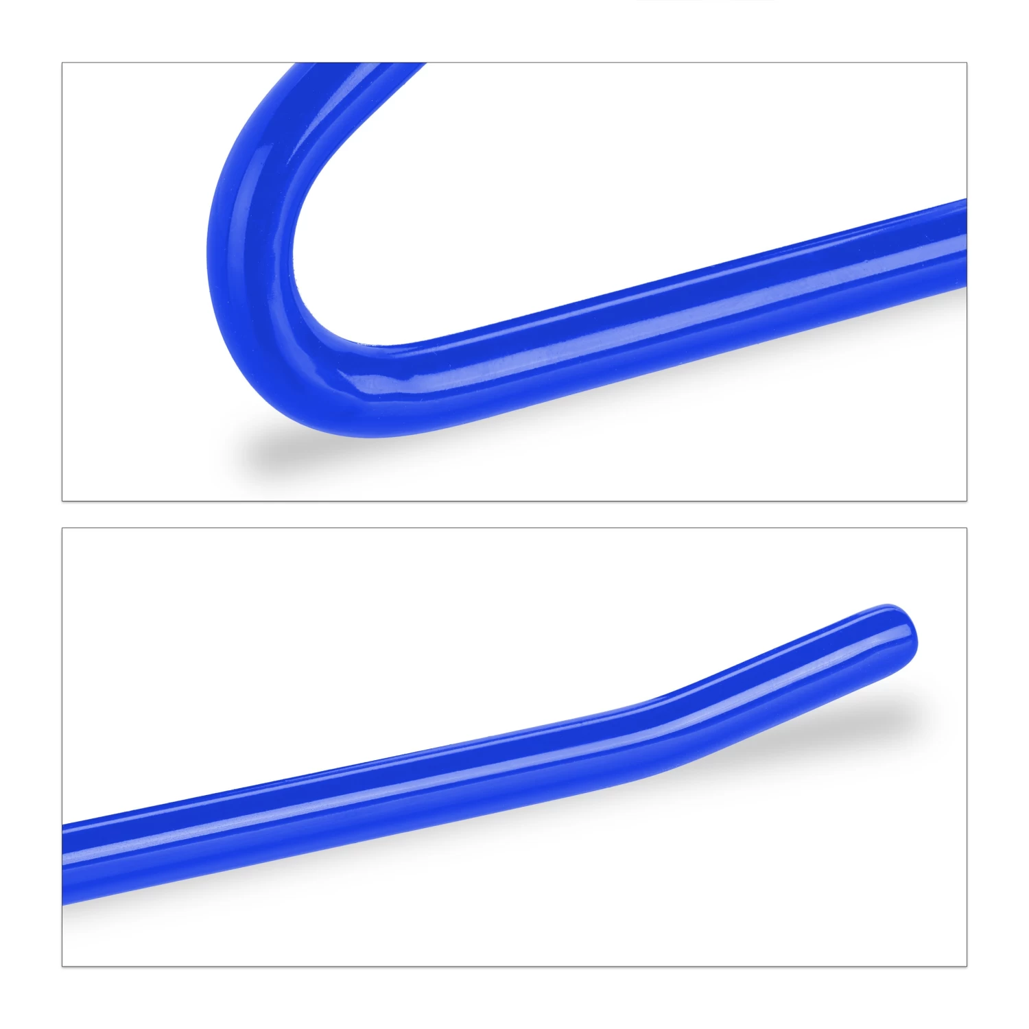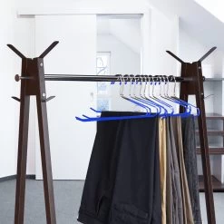 Sie möchten kein Sammelsurium verschiedenster Hosenbügel vor Augen haben, wenn Sie Ihren Kleiderschrank öffnen? Mit den Hosenhaltern im 40er Set sorgen Sie für eine angenehm einheitliche Optik in Ihrem Schrank. Die offene Hosenstange hält Röcke und Hosen fest, ohne Abdrücke oder Falten im Stoff zu hinterlassen. Dabei sorgt die blaue PVC-Beschichtung für einen sicheren Halt Ihrer Kleidungsstücke. Das zeitlose Design der platzsparenden Kleiderbügel ist gleichermaßen für Damen und Herren geeignet.