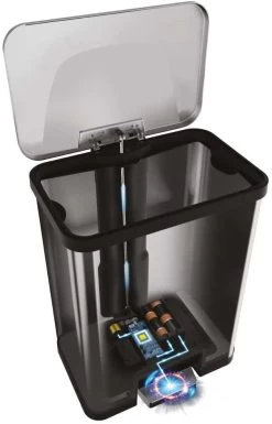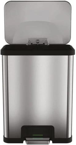 Der Echtwerk 39l Abfalleimer Power Step kommt mit einem praktischen, Tretmechanismus. Einmaliges Tippen öffnet den Abfalleimer 5 Sekunden, zweimaliges Tippen um 5 MInuten. Durch das automatische Schließen mit der Soft Close Funktion kann der Mülleimer mit einem Fuß bedient werden. Der Plastikring im inneren des Mülleimers fixiert den Müllbeutel, sodass kein Abfall daneben fällt.