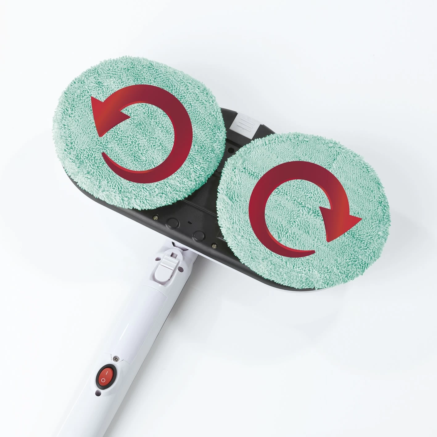 Der lästige Putzeimer wird überflüssig und die Flüssigkeit so sparsam dosiert, dass Sie mit dem ‚CLEANmaxx‘ Akku-Spray-Mopp selbst empfindliche Böden wie z. B. Laminat reinigen können. Die 2 rotierenden Reinigungs-Pads sorgen für maximale Sauberkeit ohne Streifen.