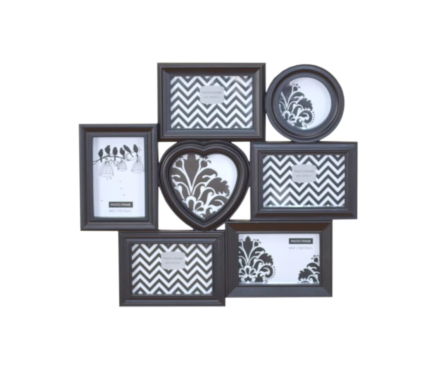 Trendiger Fotorahmen aus Kunststoff (100% Polypropylen) mit einer aufwendigen Rahmenprofilierung. Platz für insgesamt 7 Bilder, mit Klarglasabdeckung. Lieferbar in weiß und schwarz.