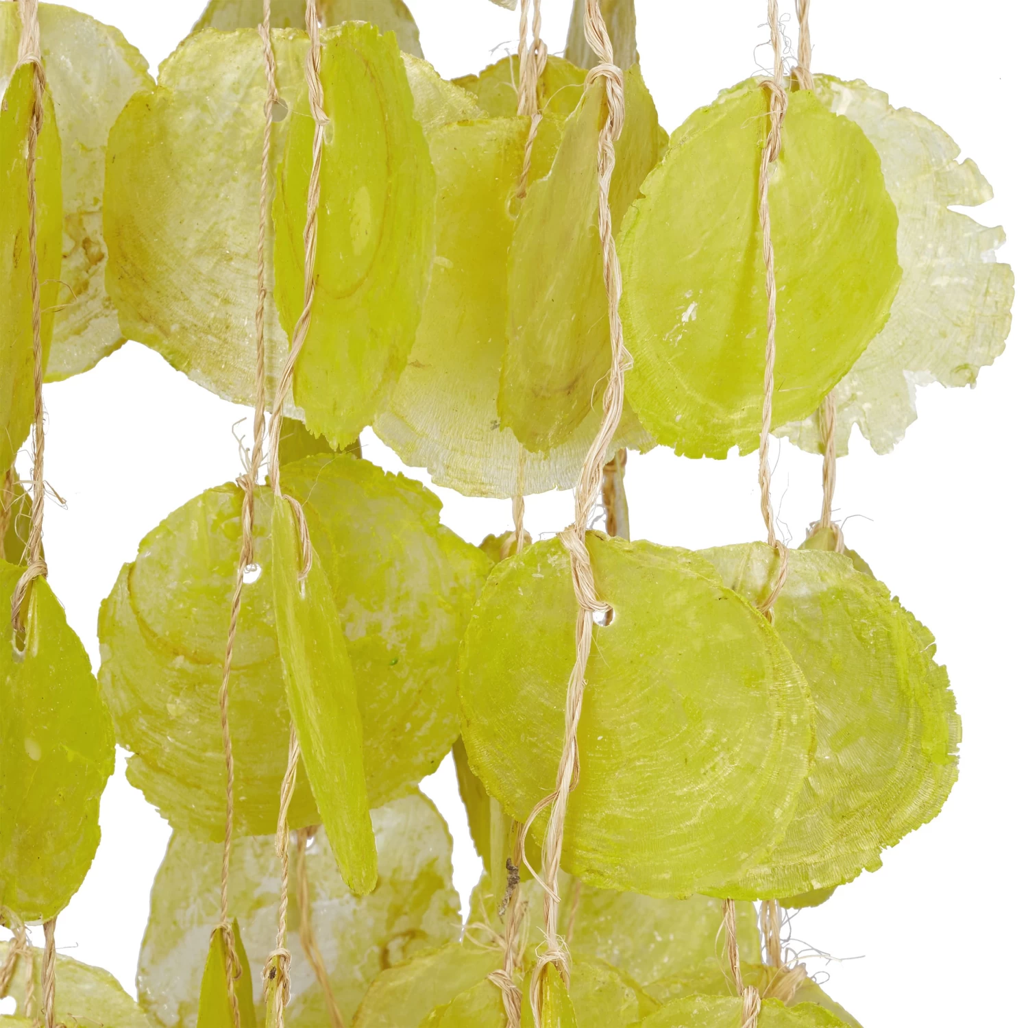 Das Capiz Windspiel mit den strahlend gelben Muschelplättchen ist der Hingucker auf Ihrem Balkon. Der Wind lässt die Muscheln sanft aneinanderschlagen und so zarte Klänge ertönen. Auch als Innen- oder Gartendeko eignet sich das maritime Klangspiel.