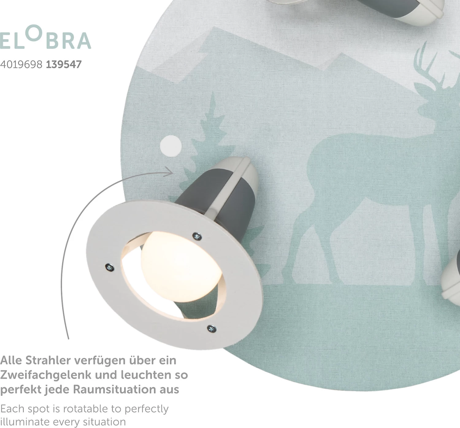 Diese Leuchte verströmt ein angenehmes Licht im Kinderzimmer und besticht mit ihrem tollen Motiv. Die drehbaren Strahler ermöglichen eine gleichmäßige, flexible Ausleuchtung.