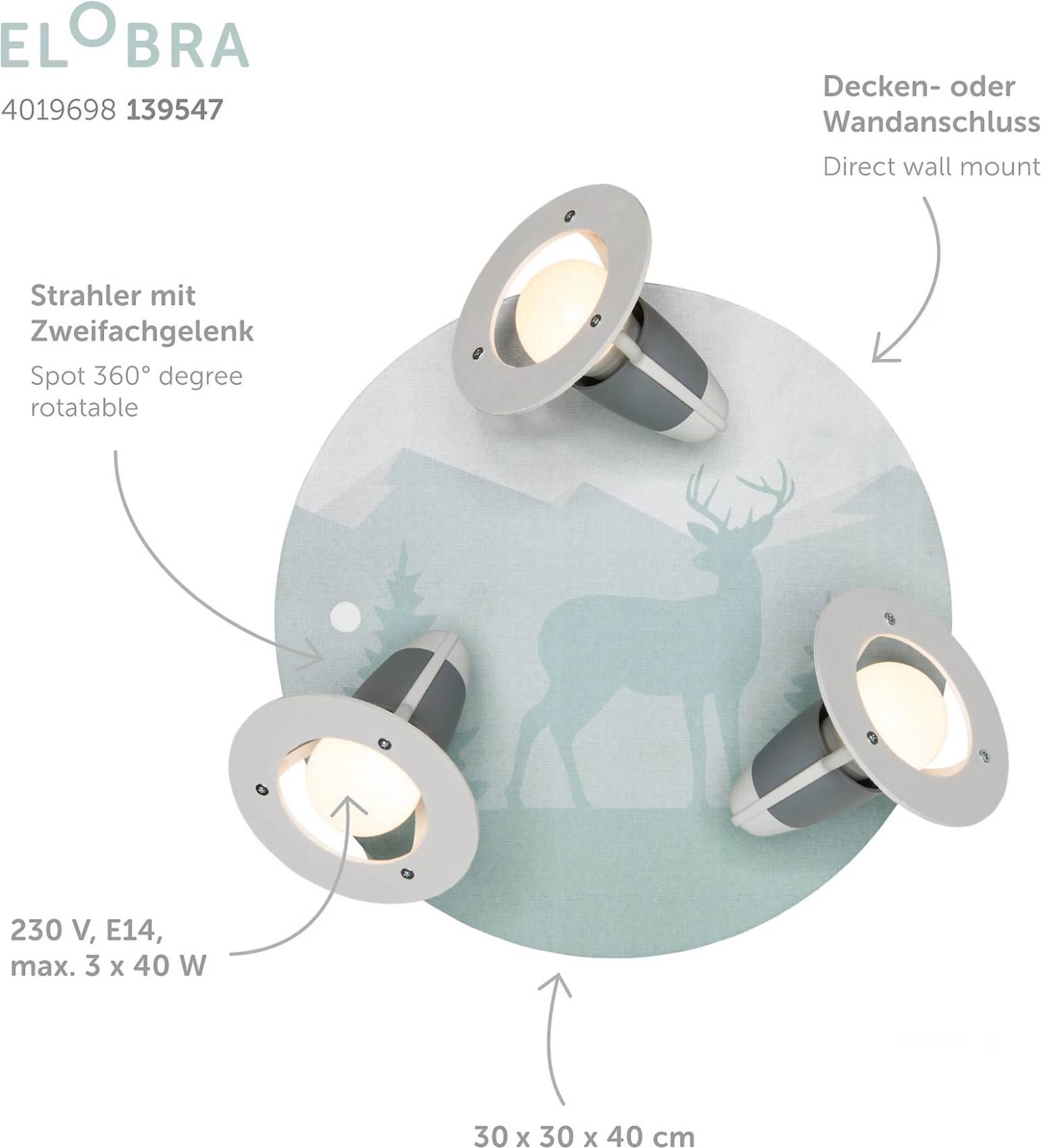 – Anzahl benötigter Leuchtmittel: 3 (nicht im Lieferumfang enthalten)