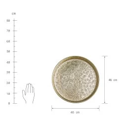 Mit traditioneller Hammerschlag-Optik und 46 cm Durchmesser setzt das Oriental Lounge Deko-Tablett aus Eisen ein schimmerndes Zeichen auf Ihrem Tisch oder Ihrer Anrichte, z. B. geschmückt mit Kugeln, Tannenzapfen oder Kerzen.