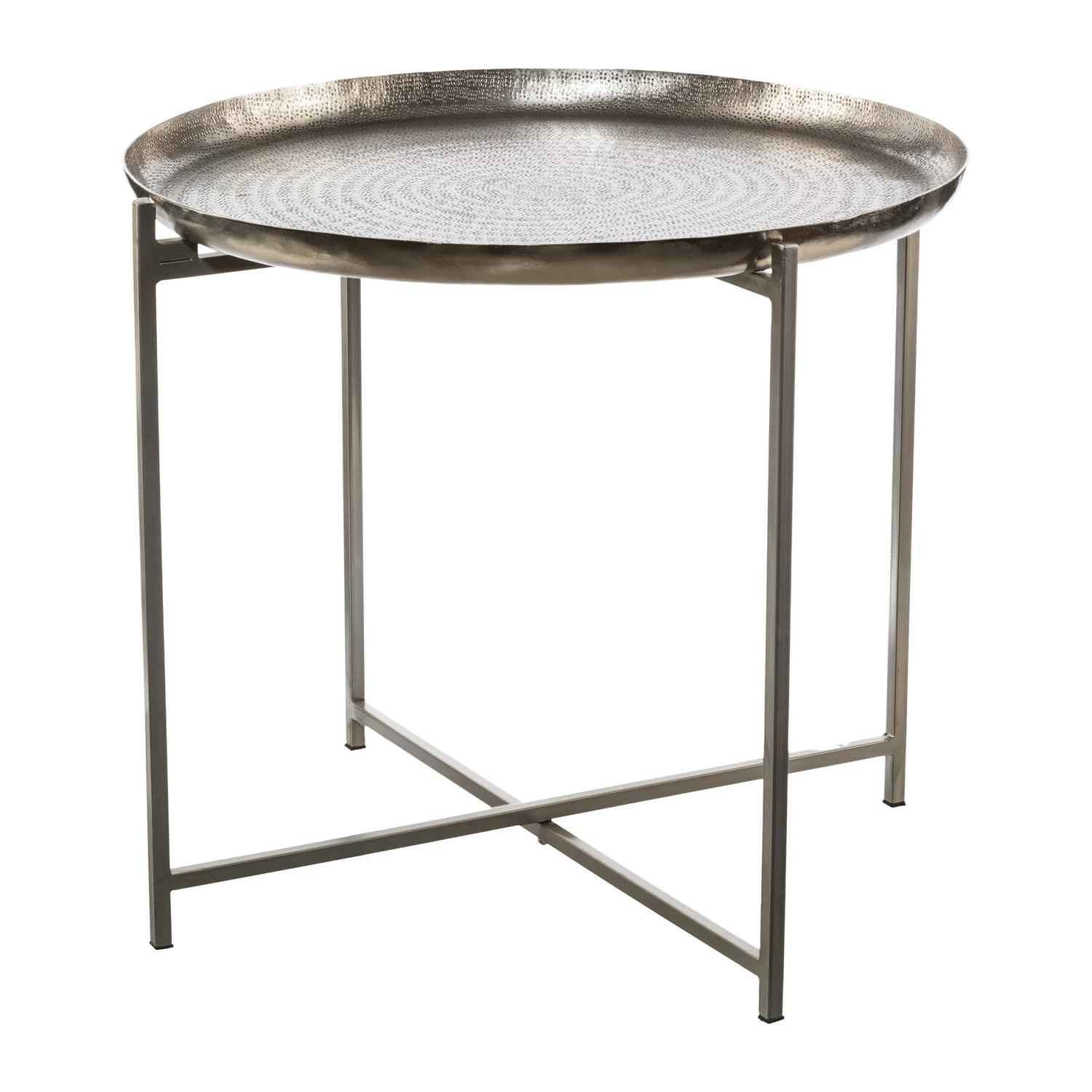 Dieser formschöne und zugleich praktische Tisch mit Tablett darf in keinem Wohnzimmer fehlen. Der Teller aus Aluminium ist super als Ablage geeignet und setzt Ihre Deko gekonnt in Szene, wie z.B. ein Adventskranz oder ein Windlicht. Dieser moderne Serviertisch ist ein echter Hingucker. Die Maße des Tellers betragen 55x3cm, die Gesamtmaße sind 58x58x50cm.