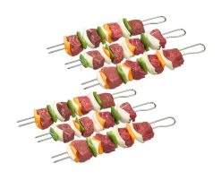 Die Premium-Edelstahl-Spieße mit praktischem Ringgriff sind leicht zu halten und vermeiden Verbrennungen. Sie können nach kurzem Abkühlen angefasst werden und das Grillgut kann direkt vom Spieß gegessen werden.