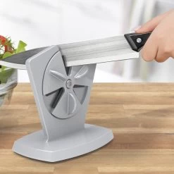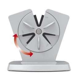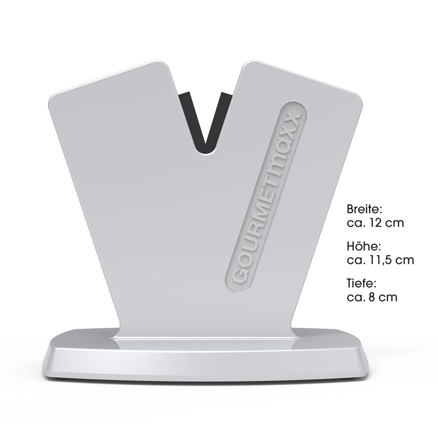 Einfach den passenden Winkel durch Drehen auswählen, die Klinge einige Male ohne Druck durchziehen und fertig! Der ‚GOURMETmaxx‘ Messerschärfer ist einfach zu bedienen und steht dank der rutschhemmenden Silikonfüße sicher und fest. So schneiden Ihre Messer blitzschnell wieder sauber und präzise!