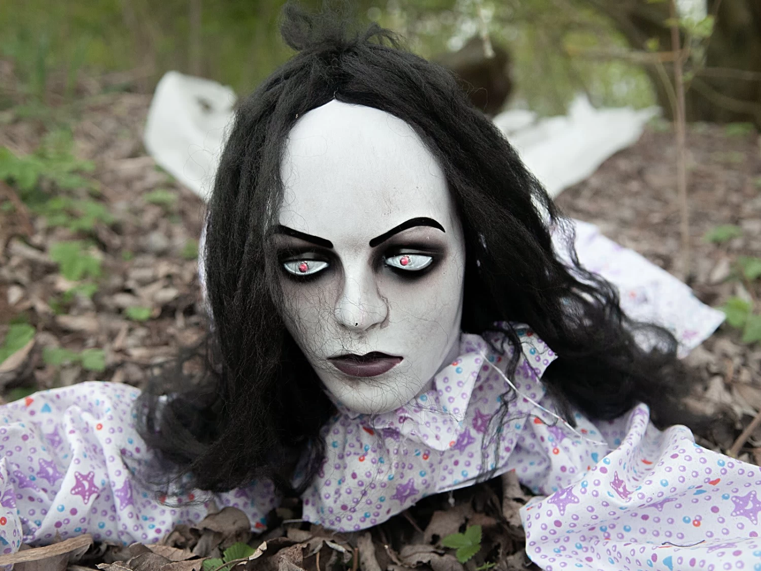 Achtung, gleich hat sie Dich…Diese kriechende Zombiefrau wirkt besonders gruselig, denn Sie bewegt sich bei Geräuschen jeweils 50cm nach vorne und versucht ihre Opfer zu fangen. Dabei flackern ihre Augen gespenstisch und es ertönen schaurige Geräusche. Nichts wie weg…