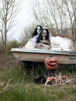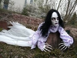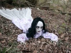 Kriechende Zombiefrau – bewegte 150cm Halloween Figur mit Licht und Geräuscheffekten – Sensor