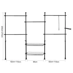 Die Flexibilität dieses Systems bietet viele Möglichkeiten, den Kleiderständer aufzustellen, ganz gleich, ob im Schlafzimmer, Ankleidezimmer oder im Keller für Bekleidung, die nur saisonal benötigt wird.