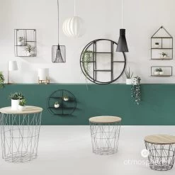 Korbtisch Beistelltisch Metallkorb Runde Wohnzimmertisch Couchtisch Kaffeetisch
