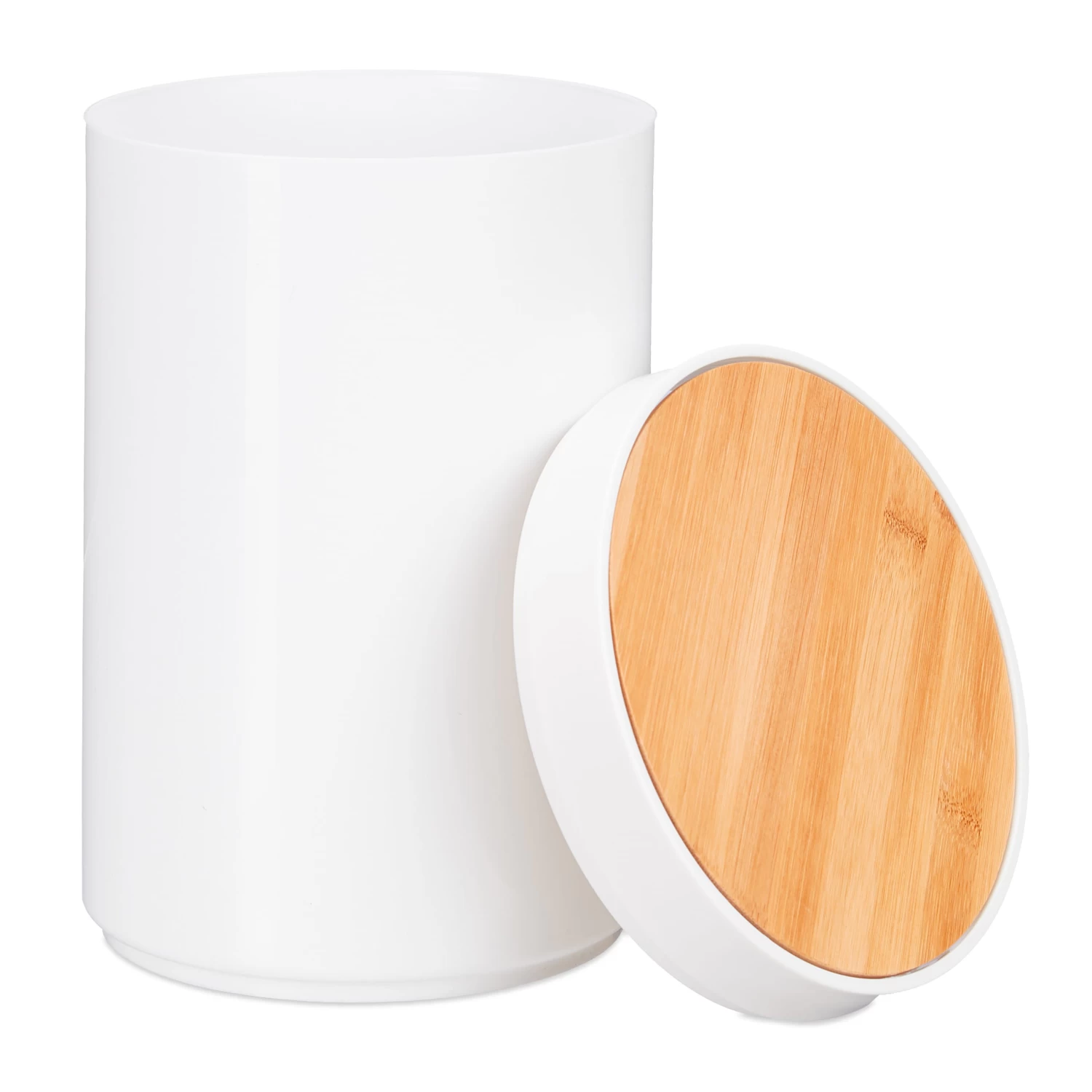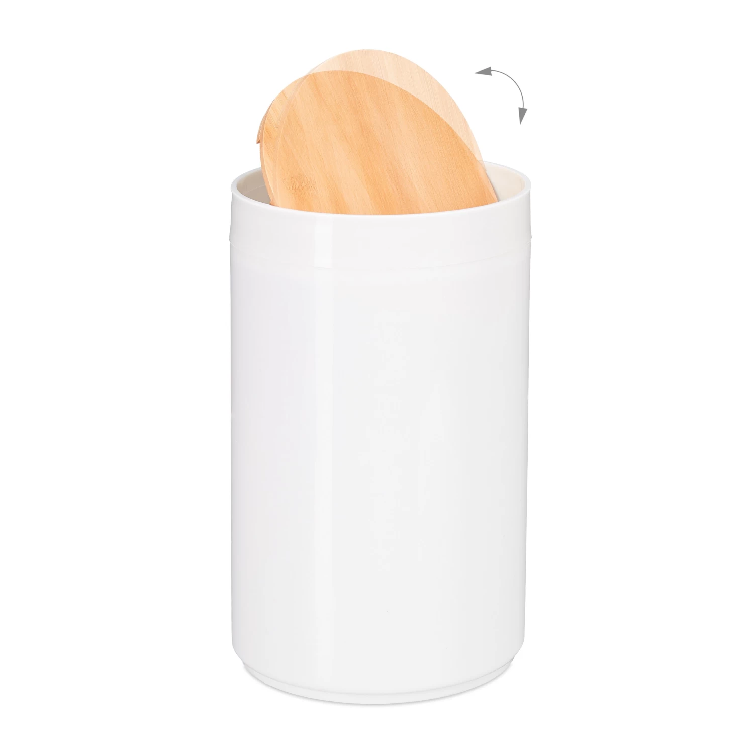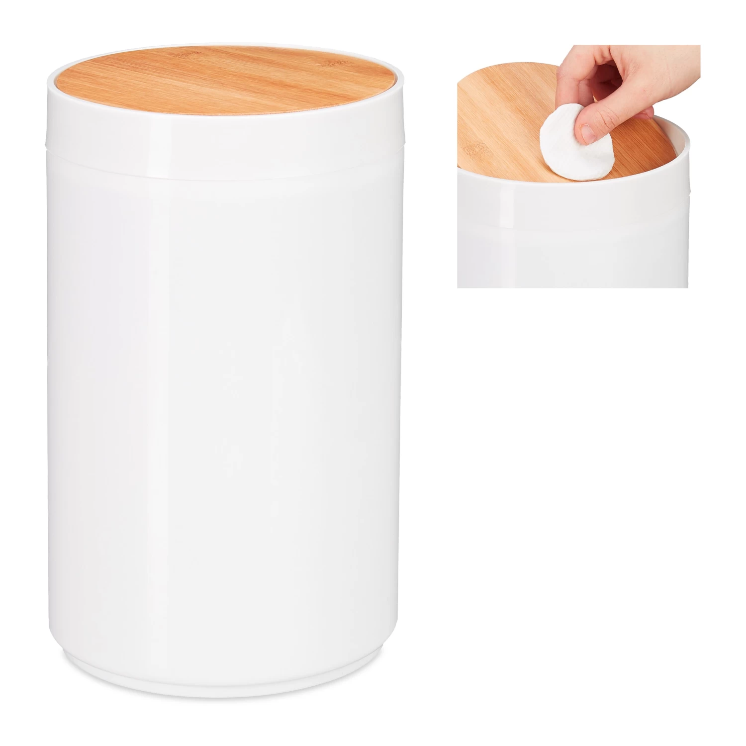 In dem runden Mülleimer mit Schwingdeckel können Sie Ihre Bio-Abfälle in der Küche oder Hygieneartikel im Bad diskret und platzsparend entsorgen. Dank seines kompakten Designs benötigt der Badmülleimer nur wenig Stellfläche und passt bequem auch in kleine Nischen oder unter das Waschbecken. Der Badkübel besteht aus robustem Kunststoff und lässt sich unkompliziert und schnell reinigen. Der Bambus-Deckel verleiht ihm einen schlichten, skandinavischen Look, der sich in jede Einrichtung gut einfügt.