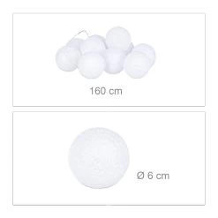 Die passende Beleuchtung trägt sehr dazu bei, dass die nächste Party, die Hochzeit oder die Weihnachtsfeier zu unvergesslichen Ereignissen werden. Die LED-Lichterkette mit den 10 Kugeln lässt Ihnen viele Möglichkeiten des Anordnens, da sie von keiner externen Stromquelle abhängig ist. Betrieben wird die Kugelkette mit Batterien (nicht enthalten). Das warmweiße LED-Licht harmoniert erstklassig mit den feinen Baumwollfäden auf den Leuchtkugeln. Wenn Sie ein stimmungsvolles Ambiente zaubern wollen, ist diese Partylichterkette eine hervorragende Wahl.