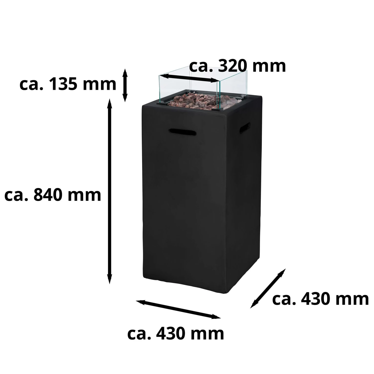– Flammen-Windschutz aus gehärtetem Schutzglas, der dieser Feuerstelle ein schönes Flammenspiel und zusätzlich eine elegante Note verleiht