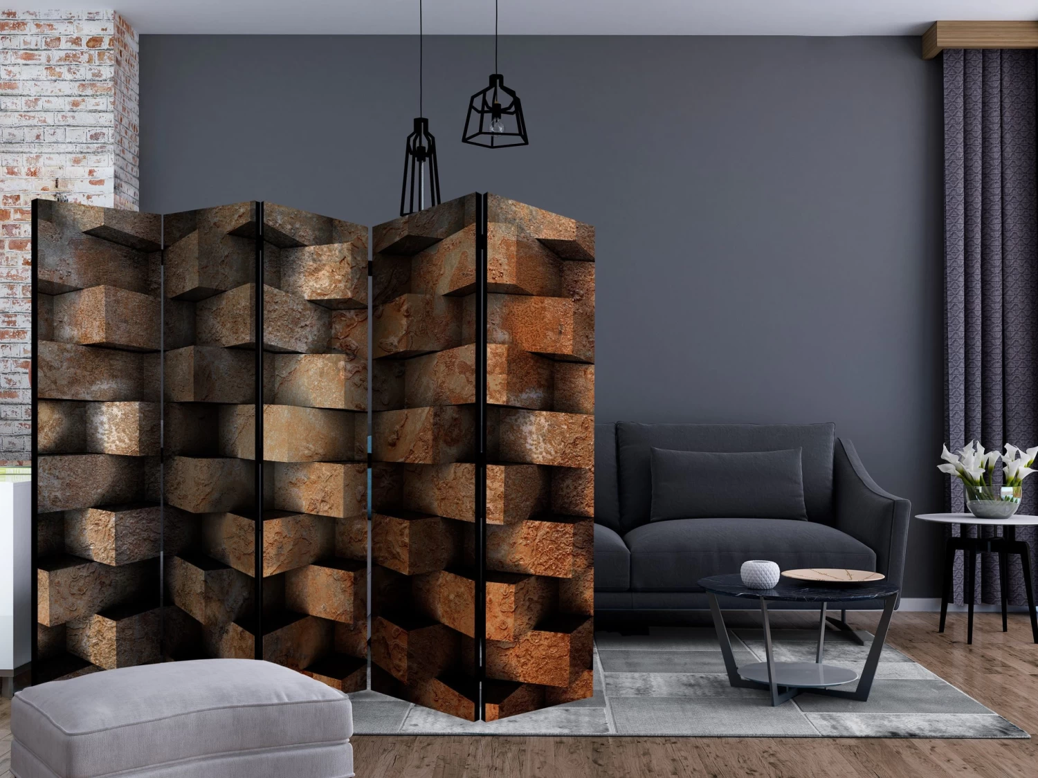 Dekoratives Paravent „Brick braid II [Room Dividers]“ ist ein besonderes Schmuckstück für die modernen Inneräume. 5-teilig, hergestellt aus Holz und beidseitig bedrucktes Paravent teilt nicht nur diskret den Raum sonder kreiert auch in dem Raum ein fabelhaftes Arrangement. Perfekte Herstellung sowie originelle Motive in der Full HD Druckqualität verursachen, dass die Zimmerparavents jedem Raum einen einmaligen Charme verleihen. Die dekorativen Paravents für die Wohnung, dass ist mit Sicherheit eine originelle Idee für die Dekoration des Innenraumes. Es lohnt sich ihre praktische Anwendung zu erwähnen – die Zimmerparavents kann man z.B. zwecks der Kachierung des Wäschetrockners nutzen. Das Paravent ist eine sehr originelle Dekoration von Räumen, die man nutzen kann, sowohl in der Wohnung wie auch in einem Atelier z.B. im Friseursalon, Arztpraxis oder im Buchhaltungsbüro. Dekoratives Paravent bewährt sich ideal als:Als Zimmerparavent und ein dekoratives Möbelstück, dass den großen Salon vom Speisezimmer und Küche trenntIn einer Ein-Zimmer-Wohnung, in dem es den Tagesraum vom Schlafzimmer trenntAls Paravent für das Schlafzimmer, in dem es z.B. die Kleingarderobe heraustrenntIn Boutiquen und Kosmetiksalons, als orignelles Arrangement und Umkleideraum in Einem!Im gemeinsamen Geschwisterzimmer, als diskrete Trennwand für den RaumIn grossen Wohnungen und Lofts Technische Daten: