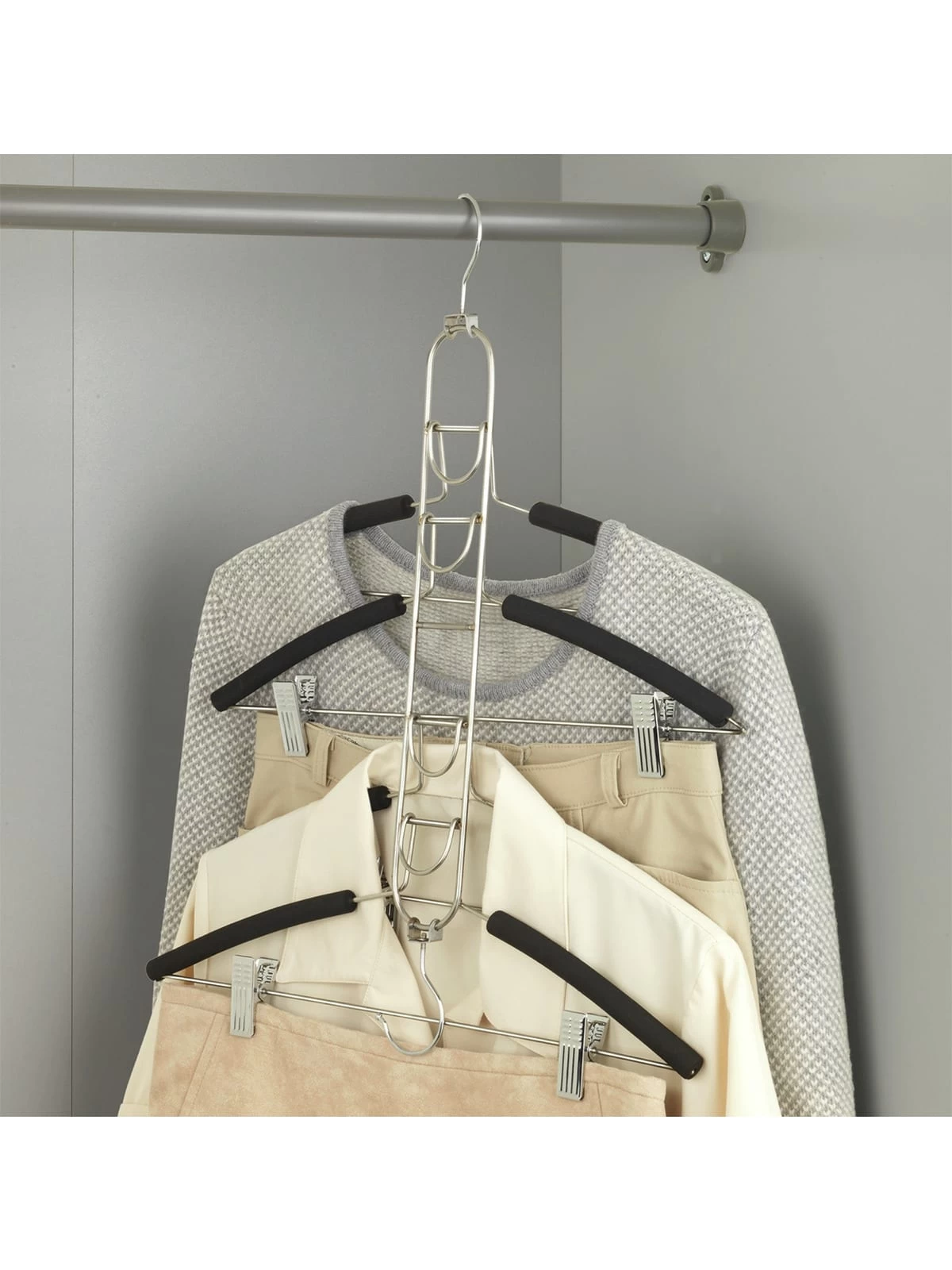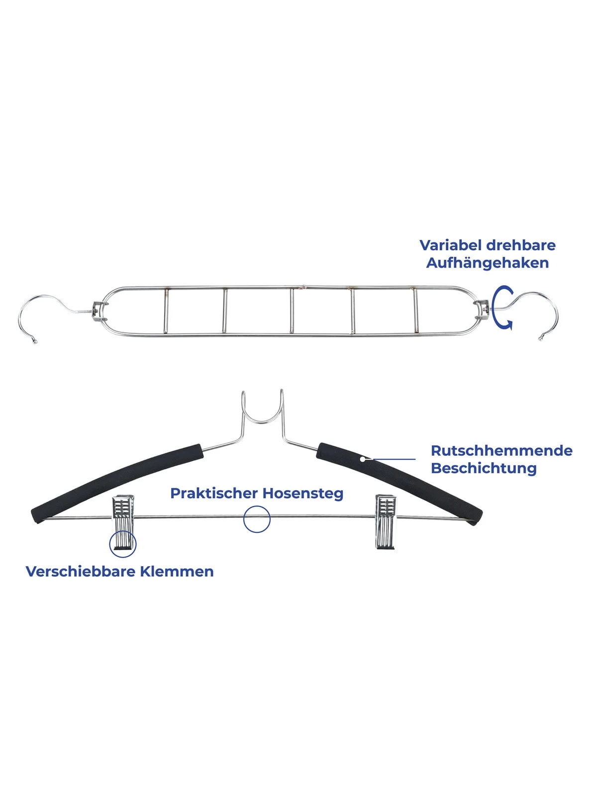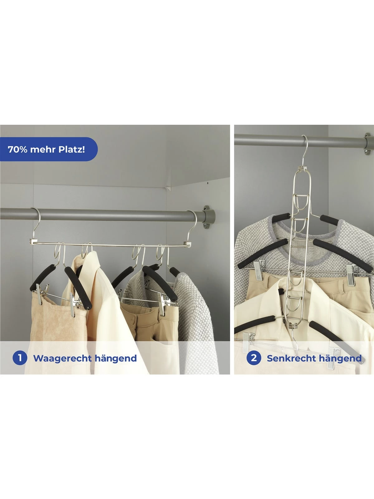 – Platzsparende Edelstahl-Kleiderbügel zur senkrechten Kleideraufbewahrung