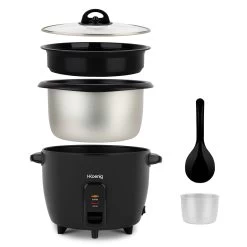 Erhalten Sie perfekten Reis mit dem Reiskocher ORYZA8 von H.Koenig! Mit einer Leistung von 700 Watt und einem Fassungsvermögen von 1,8 Litern können Sie für bis zu 10 Gäste kochen. Sie brauchen sich nicht mehr um das Kochen zu kümmern, es geschieht automatisch und gelingt immer. Nach dem Kochen hält Ihr Kocher den Reis bei optimaler Temperatur, so dass er jederzeit genossen werden kann. Er eignet sich für alle Reissorten (Basmatireis, Thai-Reis, brauner Reis usw.). Mit dem integrierten Dämpfkorb können Sie Gemüse, Fisch und Geflügel garen und so Ihre Rezepte erweitern. Ein Messbecher und ein Löffel sind ebenfalls im Lieferumfang enthalten. Die abnehmbare, antihaftbeschichtete Schüssel ist leicht zu reinigen und spülmaschinenfest.