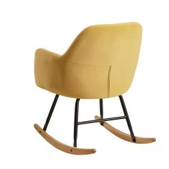 Design Gemütlicher Schaukelstuhl im skandinavischen Design Extra weiche Sitzschale für gemütliche Stunden Wippfunktion aufgrund der gebogenen Holzbeine Abmessungen Breite: 71 cm Höhe: 76 cm Tiefe: 70 cm Sitzfläche (BxT): 45 x 43 cm Sitzhöhe: 46 cm Höhe Rückenlehne: 38 cm Armlehnenhöhe: 17 cm Sitzpolsterstärke: 5 cm Maximalbelastbarkeit: 120 kg Besonderheiten Durch zwei verborgene Klettstreifen ist die Sitzpolsterung abnehmbar Erhöhte Seitenflanken sorgen für ein angenehmes Sitzgefühl Aufgrund der kompakten Größe ist der Stuhl in verschiedenen Räumen von Nutzen Material Schalensitz: Samt Metallstreben: lackiertes Eisen Kufen: Hevea Massivholz, mit Klarlack lackiert Textilzusammensetzung Bezug der Sitzschale: 100% Polyester Lieferumfang Ein Schaukelstuhl ohne Dekoration Montageanleitung und -material liegen der Lieferung bei Montage Lieferzustand: demontiert und sicher verpackt Einfache Montage durch die leicht verständliche Aufbauanleitung Pflegehinweise Wir empfehlen, frisch entstandene Flecken sofort mit einem Tuch abzutupfen. Bei einer Behandlung mit Natron kann das trockene Pulver einfach auf die betroffene Stelle aufgetragen werden. Bitte über Nacht einwirken lassen und am nächsten Tag das Natron mit einem Staubsauger absaugen.