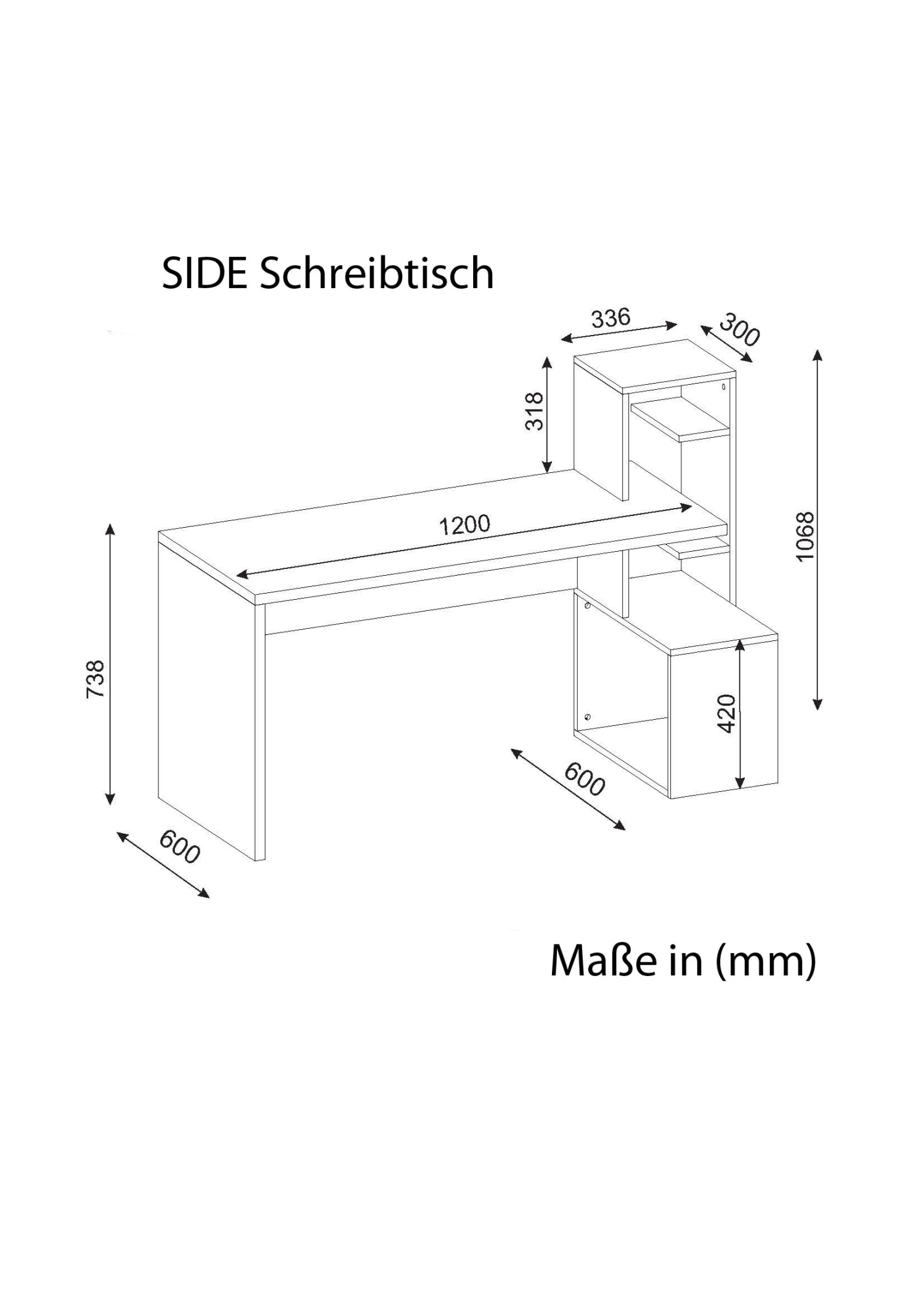 Maße des Schreibtisches: