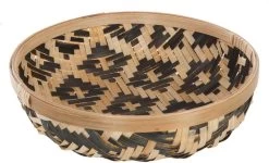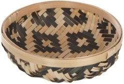 Ein Satz Bambusschalen, 3 Stück, schwarzes Muster ist eine äußerst praktische Ergänzung für jedes Interieur. Verschiedene Arten von Körben, Schüsseln und Aufbewahrungsbehältern führen in der Wohnung nicht nur eine Reinigungsfunktion, sondern können auch schöne Dekorationen bieten, die die Innenarchitektur ergänzen. Ein solches Produkt sind runde geflochtene Bambusschalen, die fast in jedem Raum funktionieren.