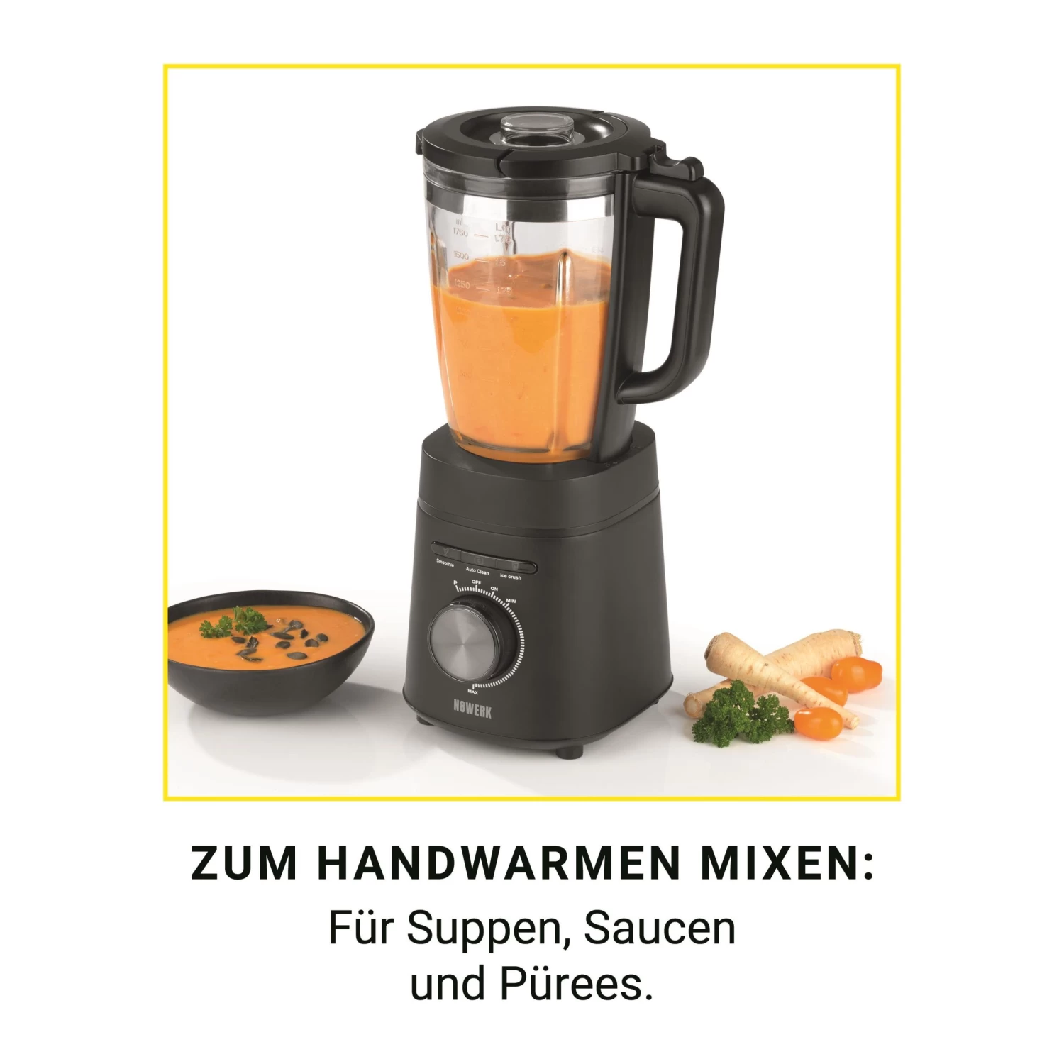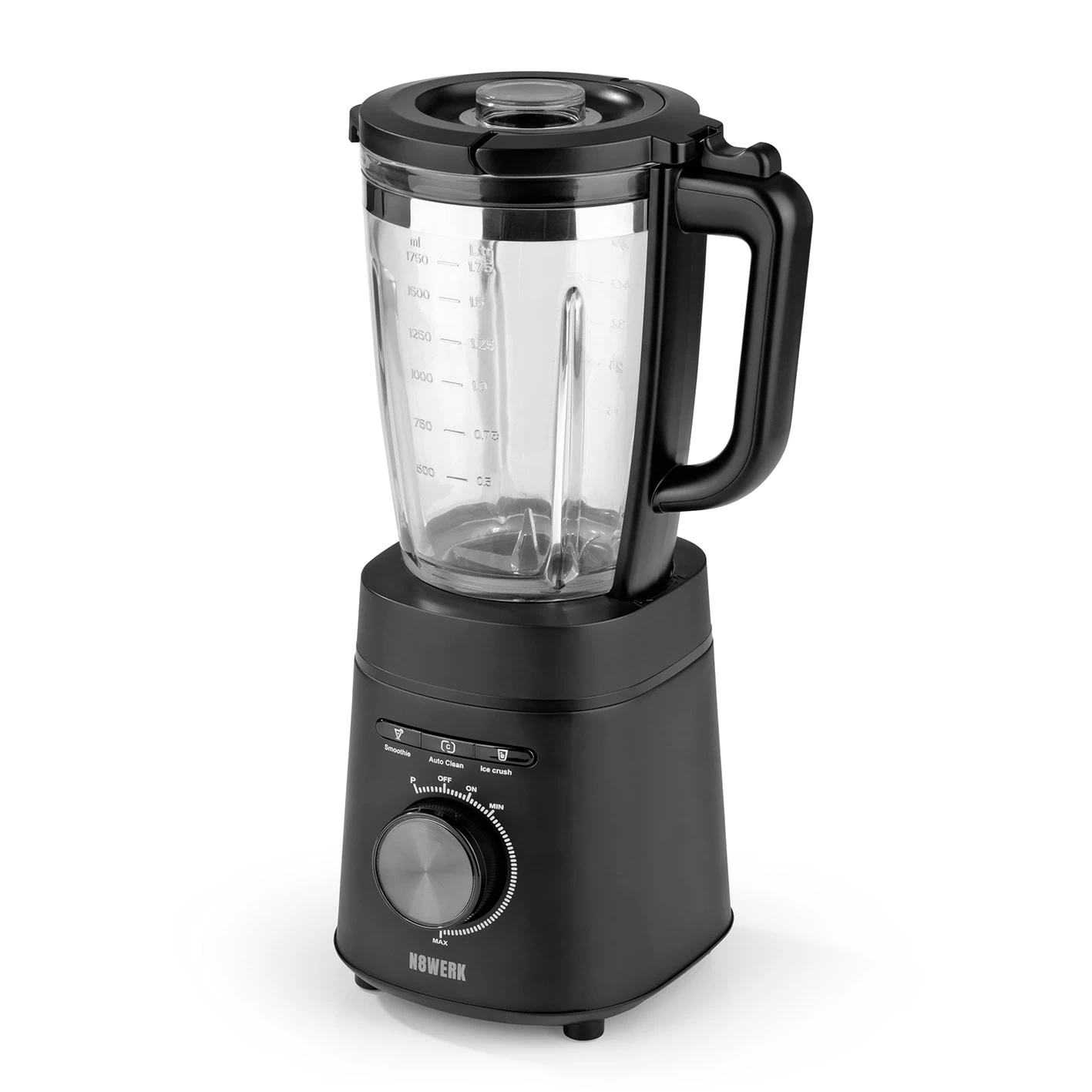 Der N8WERK Standmixer verfügt über ein hitzebeständiges 1,75 L Glasgefäß mit integrierter Mess-Skala – optimal zum handwarmen Mixen von Suppen, Saucen und Pürees und zum Kaltmixen von Smoothies, Desserts und Cocktails. Das Crushed Ice für deine Cocktails kannst du einfach mit der „Ice Crush“ Funktion herstellen. Durch die schwere Qualität bietet dir der Mixer sicheren Stand und festen Halt auf der Arbeitsplatte – auch bei höheren Mixgeschwindigkeiten. Im Anschluss an die Arbeit reinigt sich der Mixbehälter bei Bedarf wie von selbst.