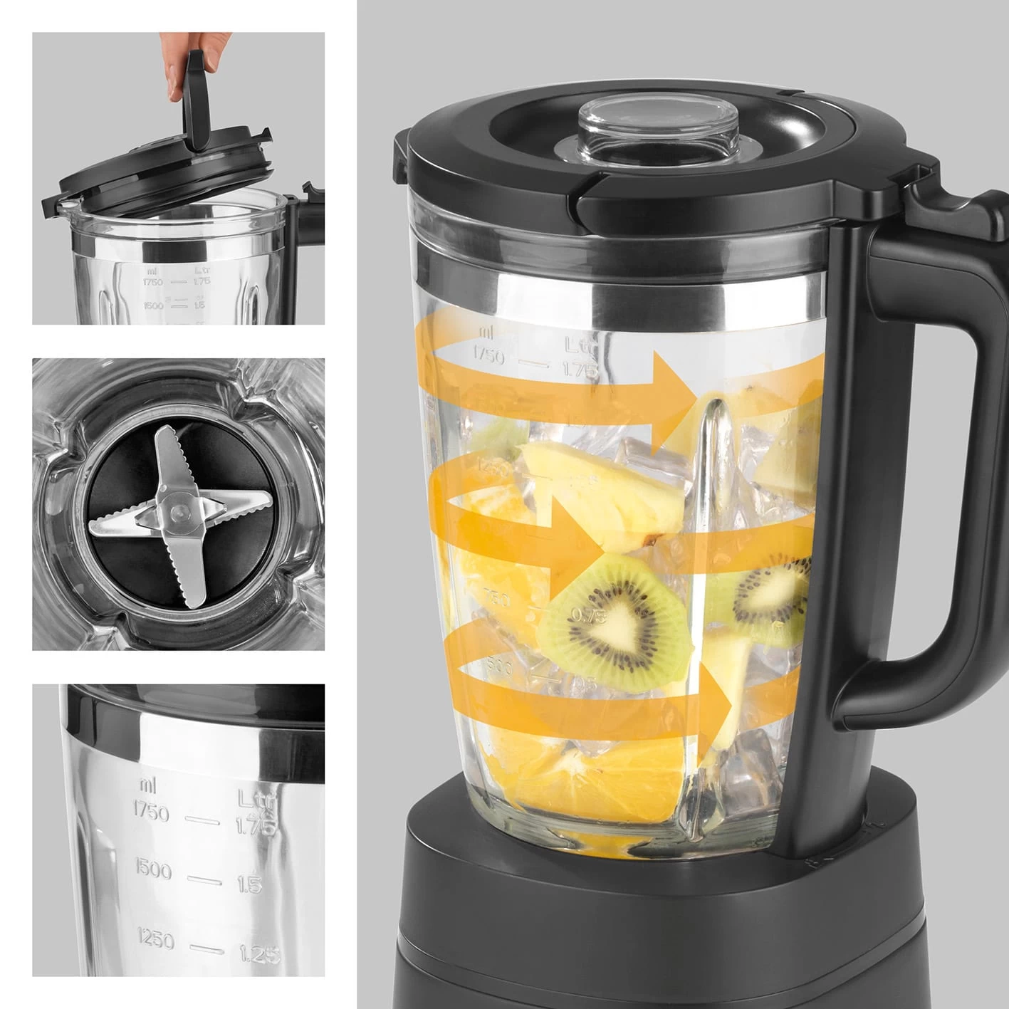– Lieferumfang: 1 x Hauptgerät, 1 x 1,75 l Glasbehälter, 1 x Deckel, 1 x Einfüllstopfen