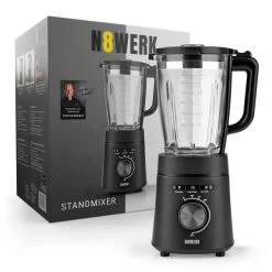 Für deinen Smoothie-Genuss und mehr. Der N8WERK Standmixer mit leistungsstarkem 1200 Watt Motor mixt und zerkleinert, crushed und püriert. Mit 6 sternförmig angeordneten Edelstahlklingen und bis zu 22.000 Umdrehungen pro Minute werden neben Früchten und Gemüse auch härtere Zutaten wie Kokosnüsse oder Mandeln verarbeitet. Die manuell einstellbare Geschwindigkeitswahl mit Hintergrundbeleuchtung und die Pulsfunktion bieten dir dabei die volle Kontrolle.