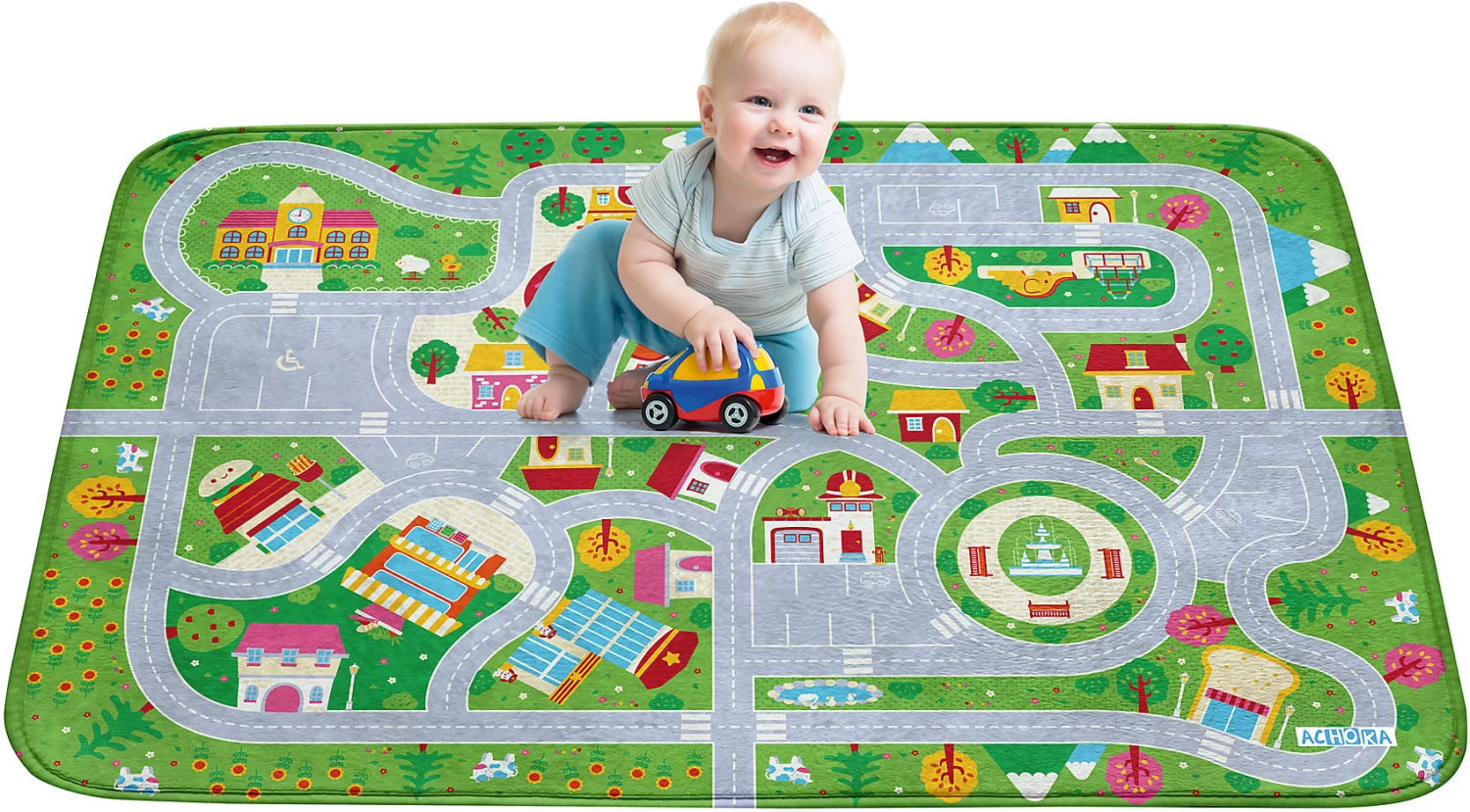 Spannende Motive und strahlende Farben machen diesen Spielteppich „My first City“ zu einem so wunderbaren Wohnaccessoire für kleine Entdecker. Er besteht aus robuster Kunstfaser und zeichnet sich durch seinen besonders weichen Flor aus. Hier macht das Spielen ganz besonderen Spaß!