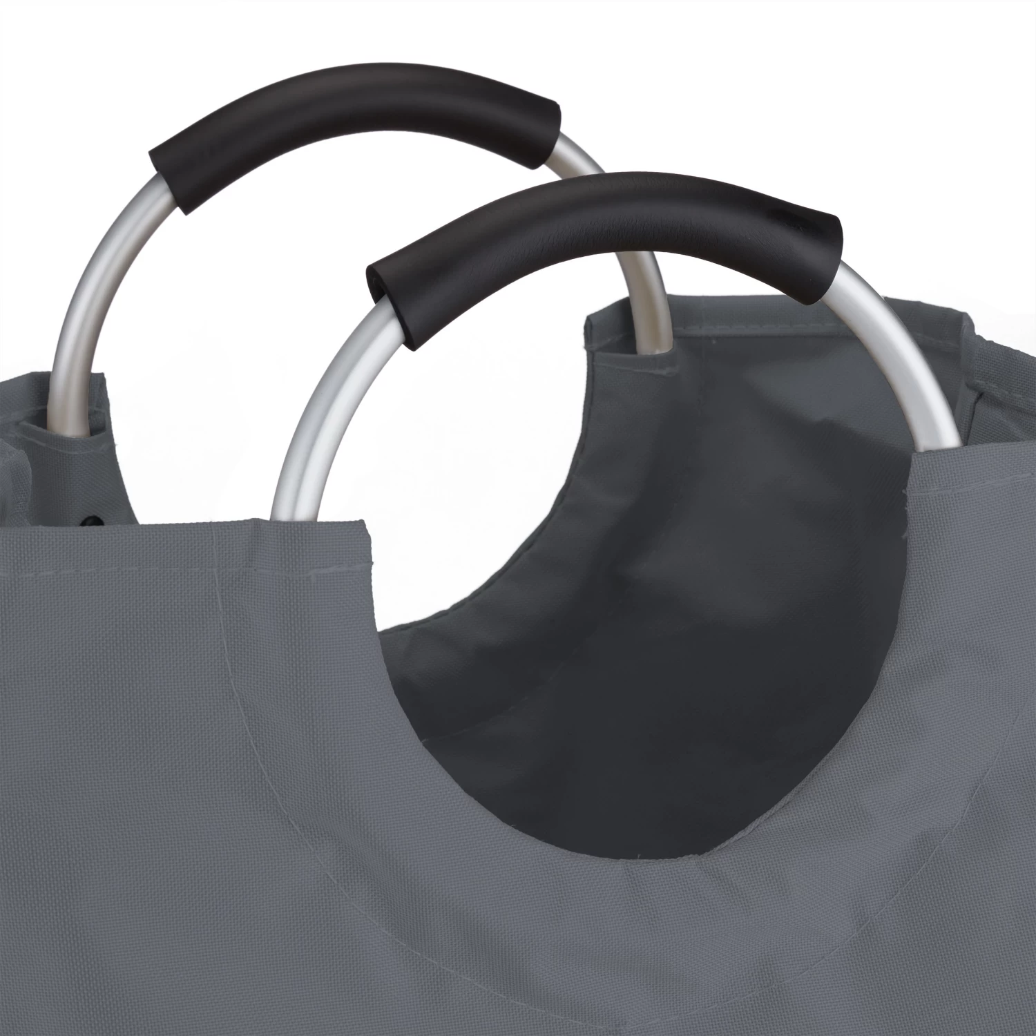 Der faltbare Wäschebehälter überzeugt neben dem modernen Stand-Up Design durch seine flexible Einsatzmöglichkeit. Dank des leichten Polyester-Stoffes und der zwei handlichen Griffe in Ringform können Sie die Wäschetasche überall mit hinnehmen. In zusammengefalteter Form ist der Wäschekorb darüber hinaus platzsparend verstaut.