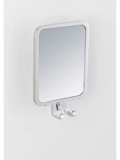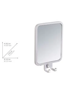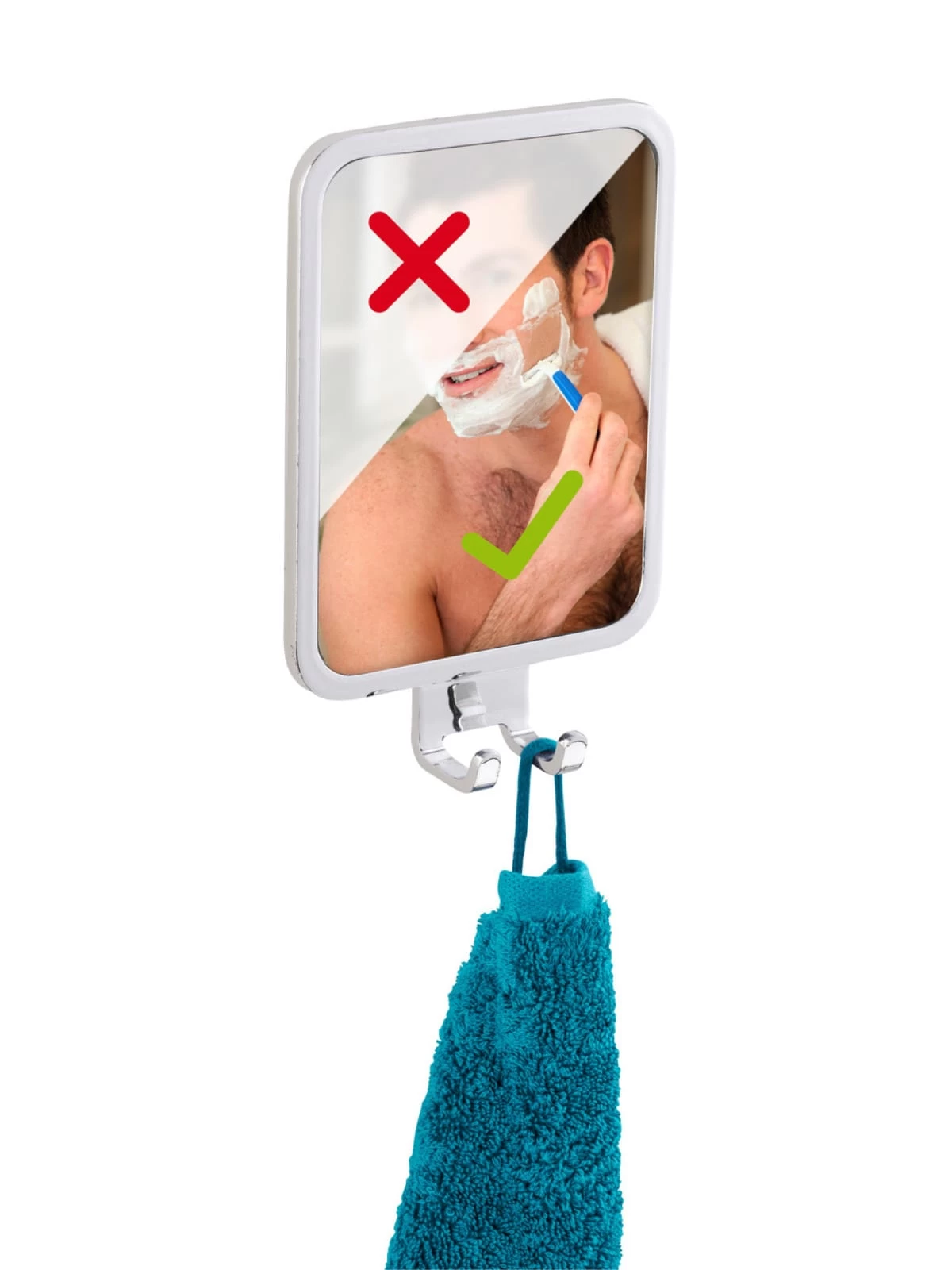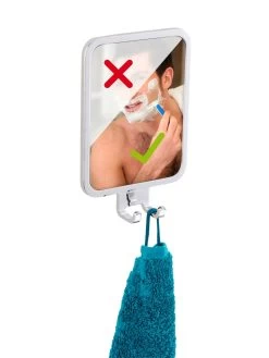 Der Spiegel ist mit einer Anti-Beschlageigenschaft ausgestattet, sodass sich bei hoher Luftfeuchtigkeit kein Kondenswasser auf der Glasfläche niederschlagen kann. Mit den zwei Haken sind weitere Utensilien griffbereit.