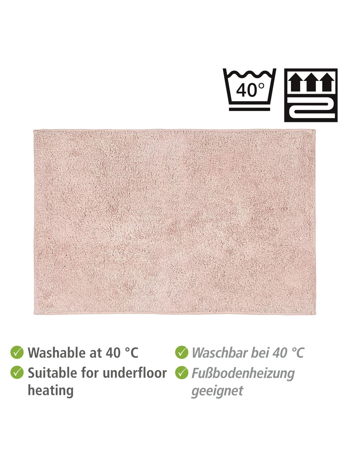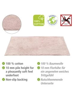 Die Badematte Ono von WENKO in Rosa kreiert stilvolle Behaglichkeit im Badezimmer. Der Bad-Teppich ist in weiteren Farbvarianten erhältlich.