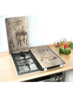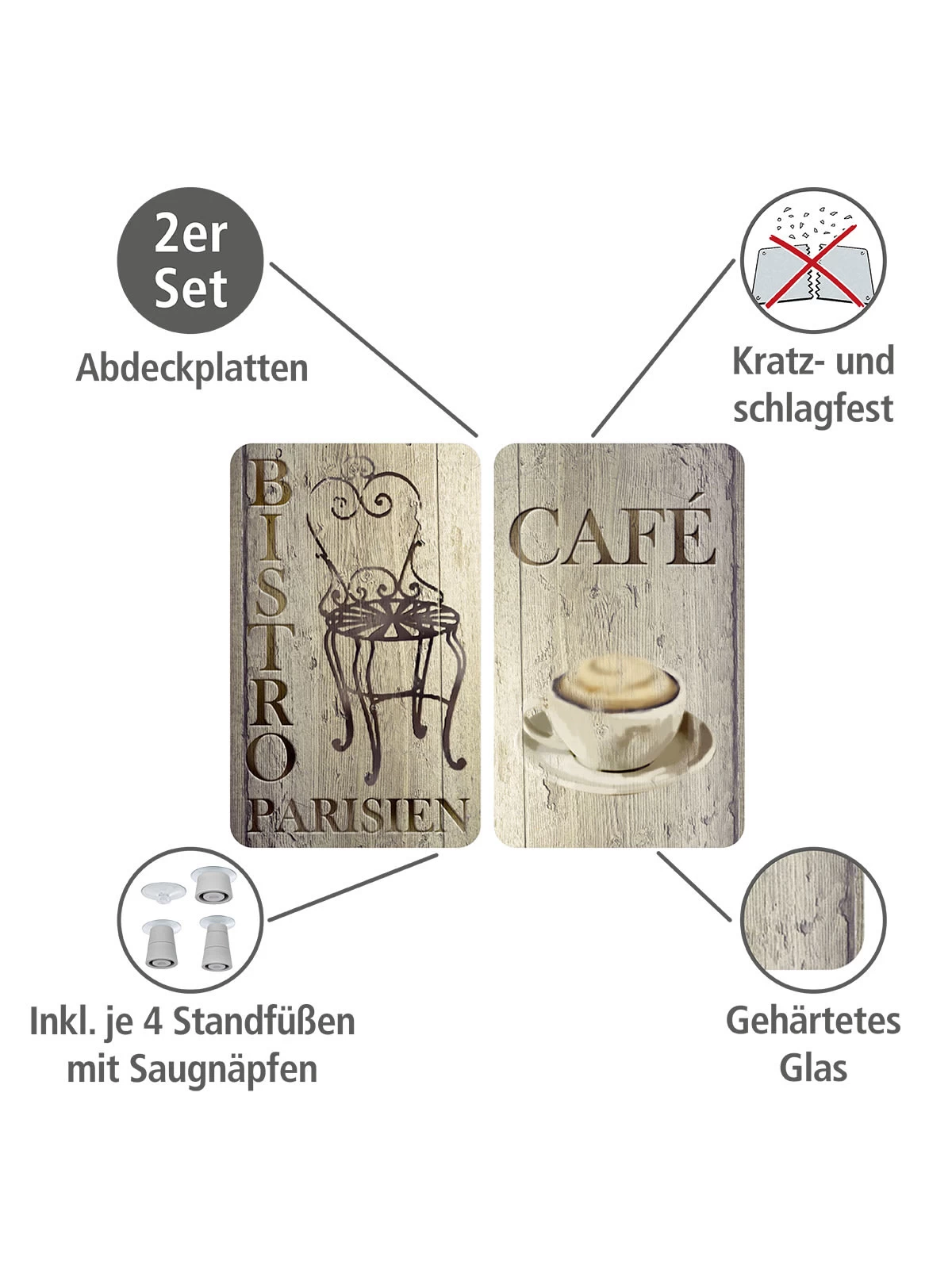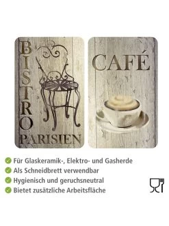 Das zweier Glas-Abdeckplatten-Set Bistro bringt Kaffeehaus-Flair in die Küche und sorgt für zusätzliche Funktionalität des Herdes.