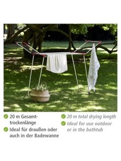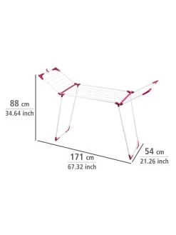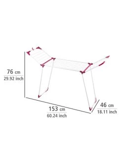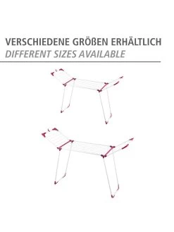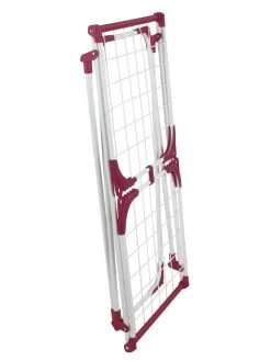 Durch das robuste Metall mit bordeaux-farbenen Kunststoff-Ecken, hat der Wäsche Trockner Summer Dry einen besonders stabilen Halt. Durch einen integrierten Clip an beiden Flügeln können diese verbunden werden und „wedeln“ beim Transport nicht herum. So klappt beim Verstauen nichts aus. Zudem können am Clip auch Utensilien wie ein Wäscheklammerbeutel aufgehängt werden. Die bordeaux-farbenen Eck-Kappen besitzen eine Kleiderbügelvorrichtung für mehr Platz zum Trocknen. Bei einer Gesamttrockenlänge von 13 m findet jedes Wäschestück seinen geeigneten Platz.