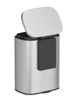 Neben dem Mülleimer Sare in mattiertem Edelstahl ist das puristische Modell von WENKO in glänzendem Edelstahl sowie in schwarz lackiertem Stahl erhältlich. Für jeden Einrichtungsstil findet sich so das passende Modell und auch im Badezimmer ist Mülltrennung problemlos möglich.