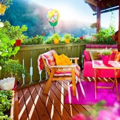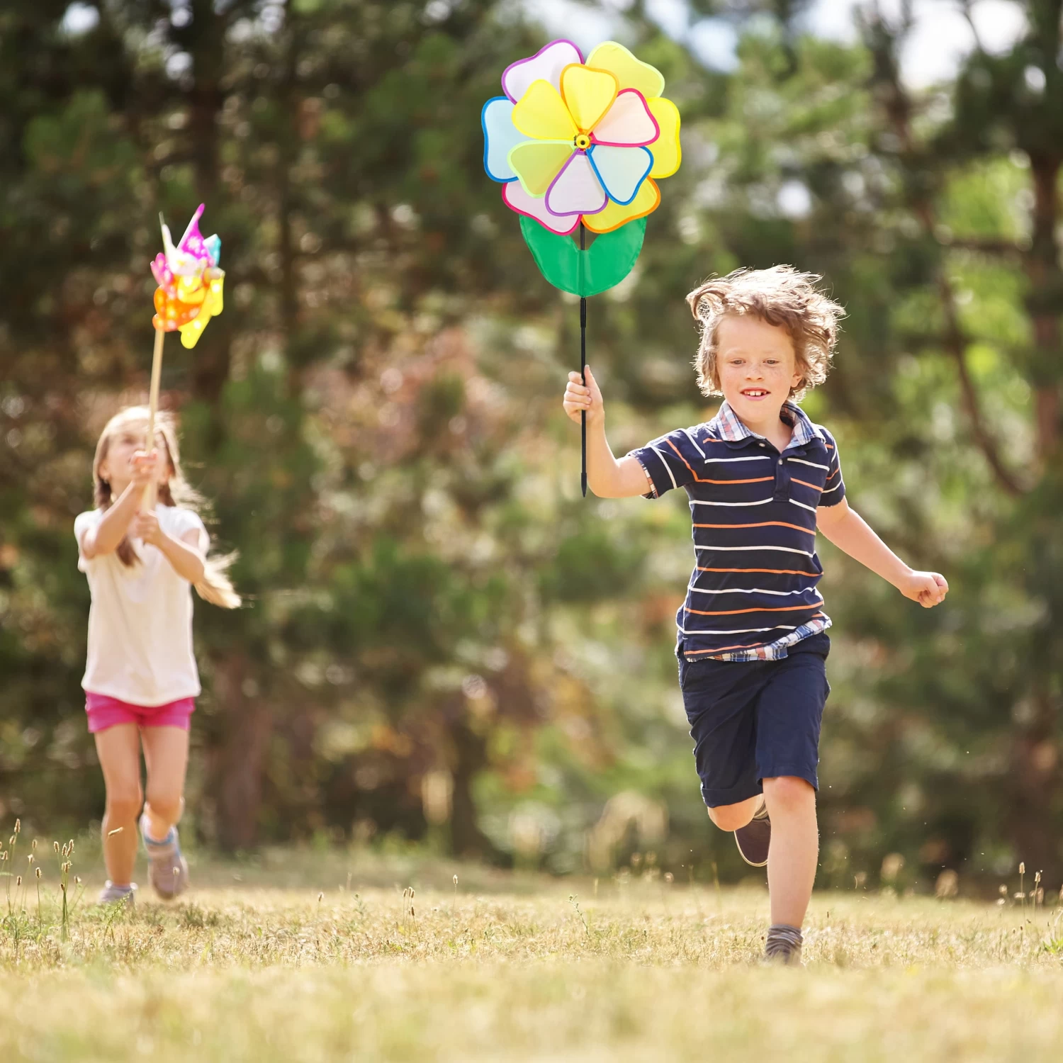 Das frühlingshafte Windrädchen mit bunten Blütenblättern ist die ideale Dekoration, um karge Balkone, graue Terrassen oder einfältige Gärten freundlicher zu gestalten. Einfach ins Beet oder einen Blumentopf gesteckt, ist das Blumen Design ein echter Hingucker. Genieße das prachtvolle Farbenspiel, wenn das Windrad von wehenden Lüften angetrieben wird. An dem Windspiel können sich Kinder und Erwachsene gleichermaßen erfreuen. Nimm die Windmühle auch mit zum Camping oder an den Strand.