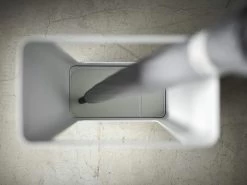 herausnehmbare Abtropfschale mit Silikoneinlage zur Geräuschdämpfung beim Hineinstellen des Schirms